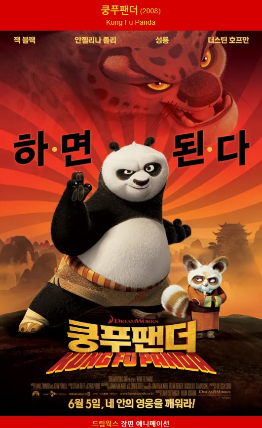 독특한 스토리: "쿵푸 팬더"는 마스터 쿵푸 전사가 되기를 꿈꾸는 팬더 포에 대한 이야기로, 특별한 능력을 가지지 않았지만 열정과 인내로 어려움을 극복하는 이야기를 다룹니다. 이 스토리는 독창적이며 감동적인 메시지를 담고 있습니다.